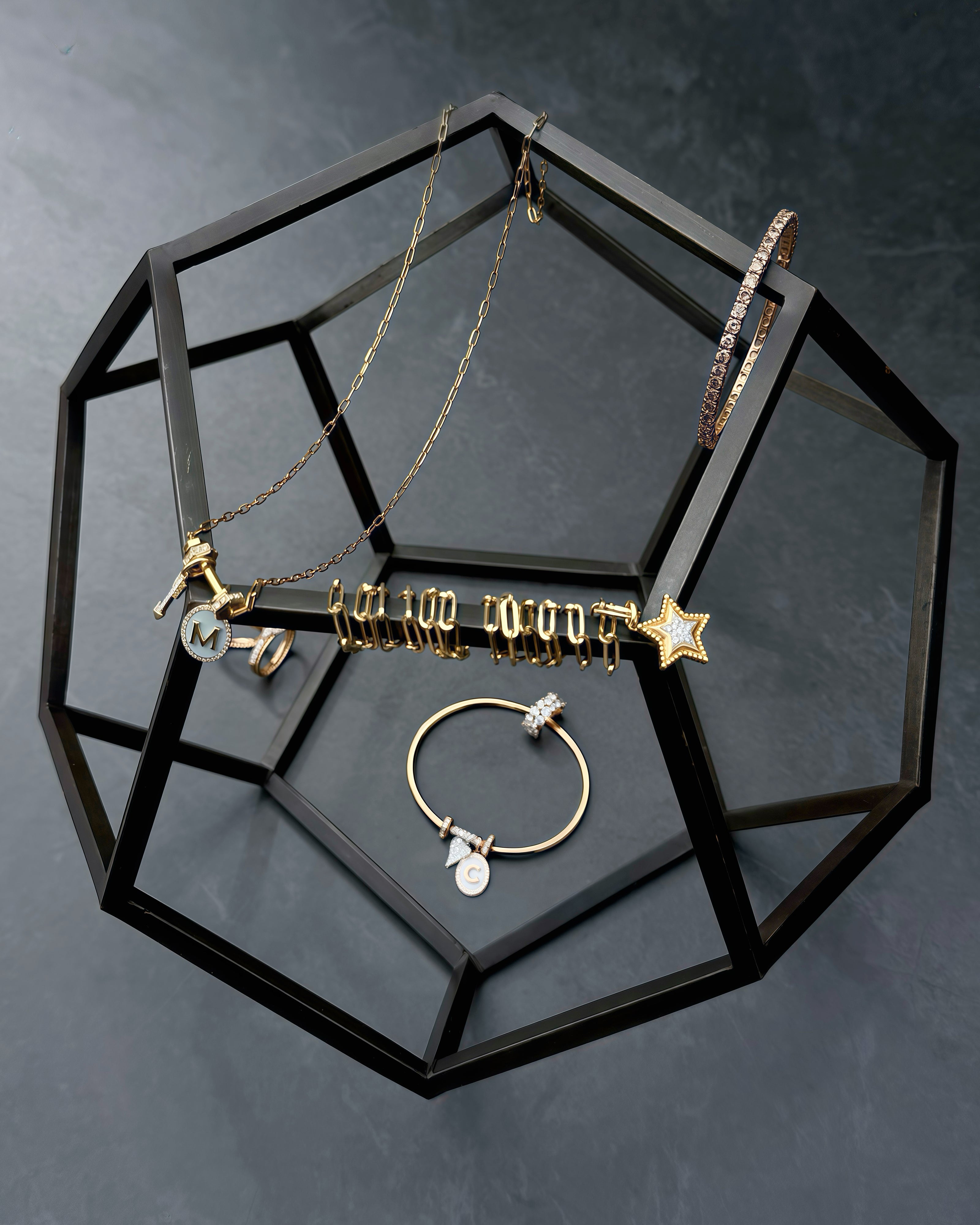 Inspired by the barbell, this collection embodies balance, focus, and resilience. Clean, fluid lines in 18k yellow, rose, and white gold are accented with diamonds. Petite yet powerful, the barbell-shaped necklaces, rings, and bangles are designed to share life’s weight with the wearer. Each piece stands alone or layers with ease to elevate everyday style.