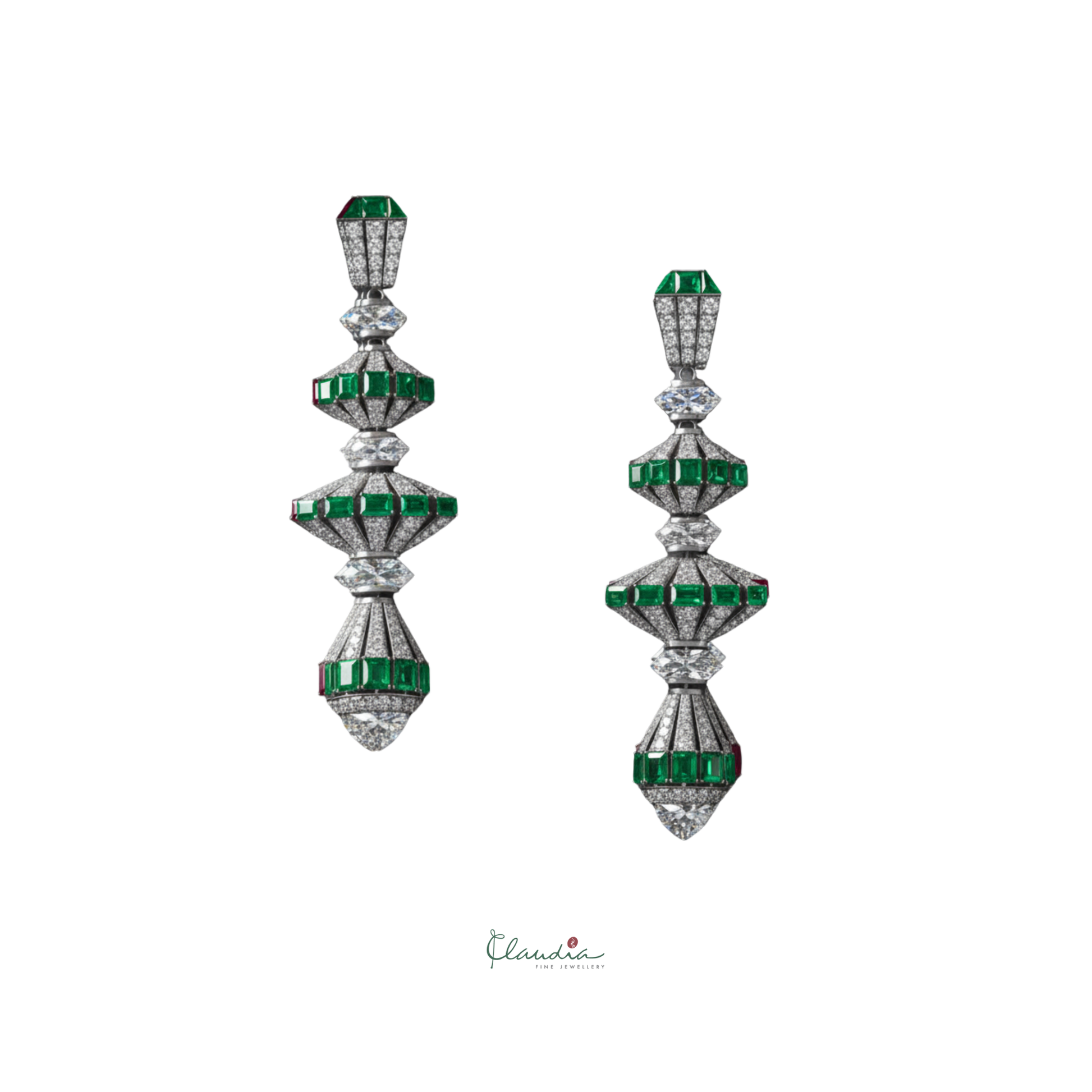 Lantern Emerald and Diamond Earrings